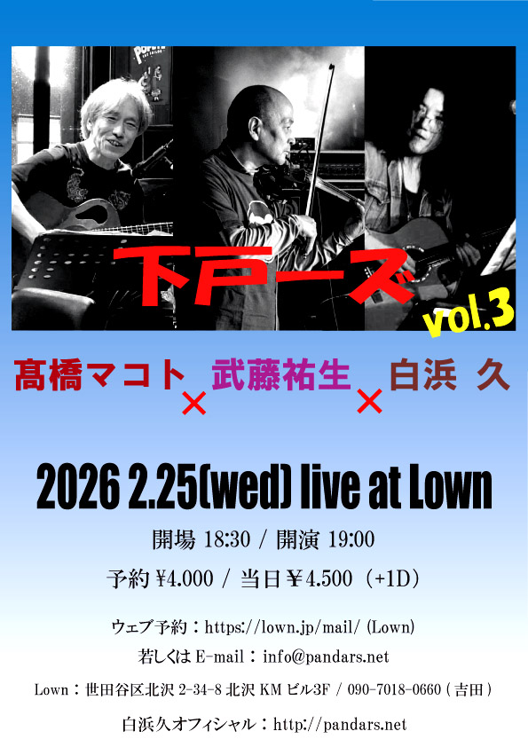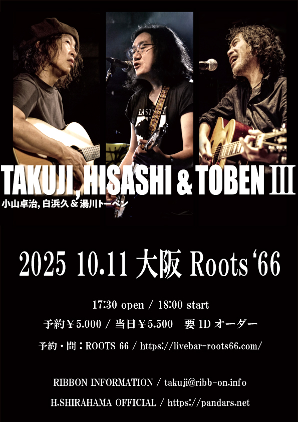 金尾よしろう:vo>r、松下年見:vo、白浜久:gtr&cho