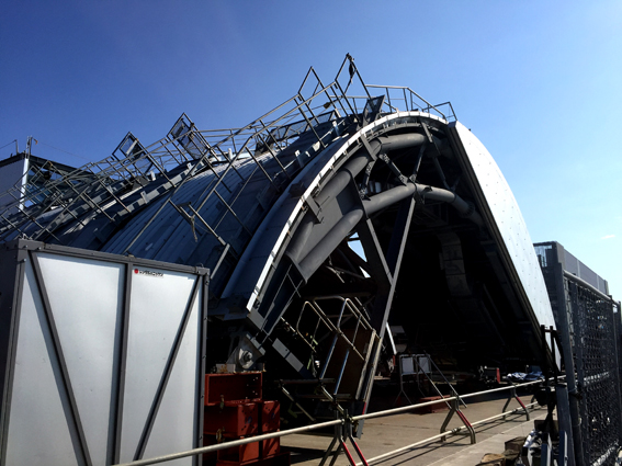 福島第一原発三号機の廃炉作業の際、原子炉を囲うシールドが置かれていた↑